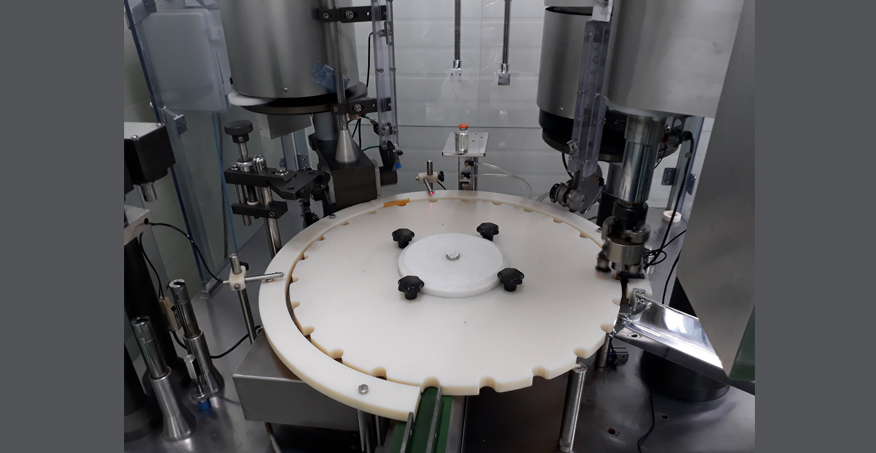 휠판 교체로 용기의 변경이 가능한 다품종 생산에 적합한 충진기입니다