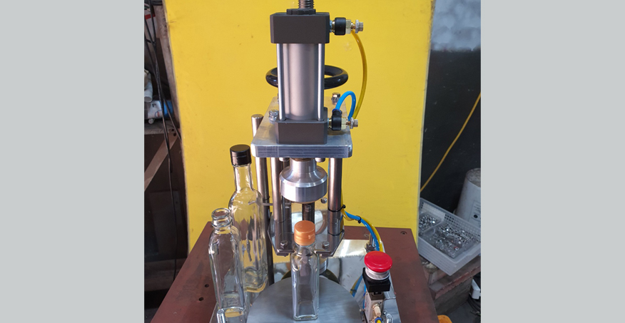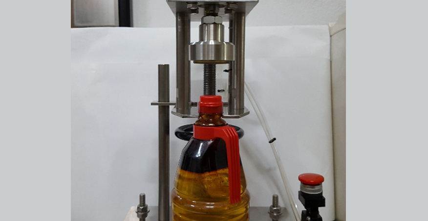 이중 구조의 기둥 및 헤드의 상하 조절 장치로 작은 용기에서 큰 용기까지 정확한 캡핑이 가능하며 전용 목가이드가 있어 PET병 같은 부드러운 용기도 손상 없이 캡핑이 가능 합니다.